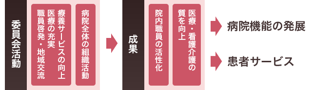 看護管理や患者看護・患者介護に関する情報交換並びに看護・介護に必要な事項について検討し、経営の効率化並びに、看護・介護の質の向上を図る
